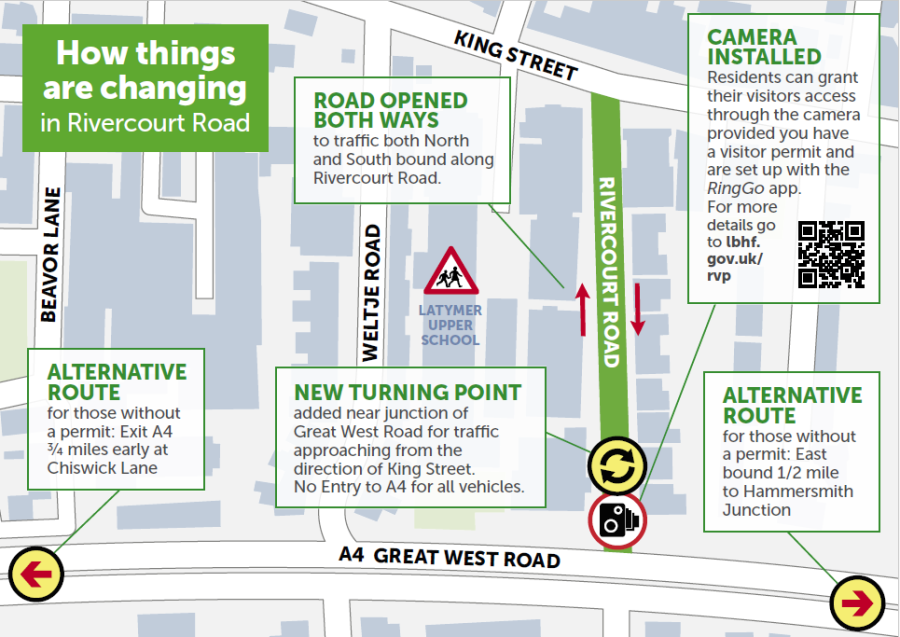 Anyone with a vehicle registered in H&F can continue to access Rivercourt Road from the A4.