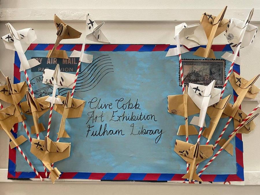 His works are paired with other residents' stories of the war, as well as works from local school children inspired by his vision.